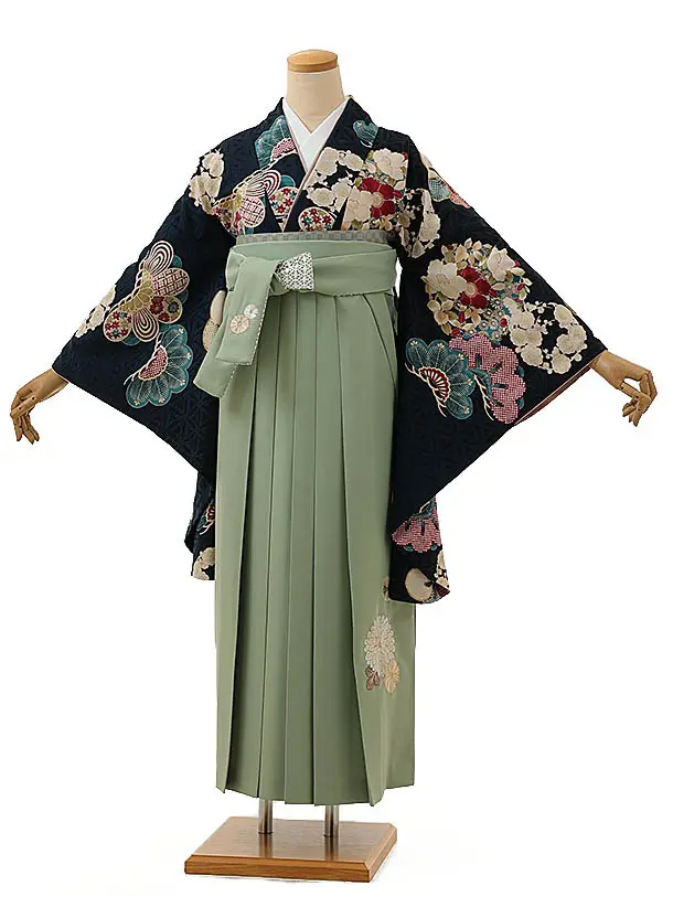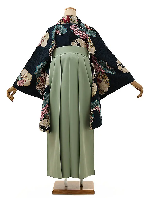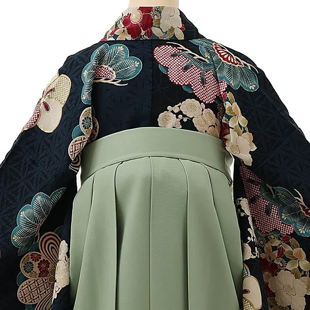 卒業式袴レンタル1227 九重 松に花丸紋紺xミントグリーン