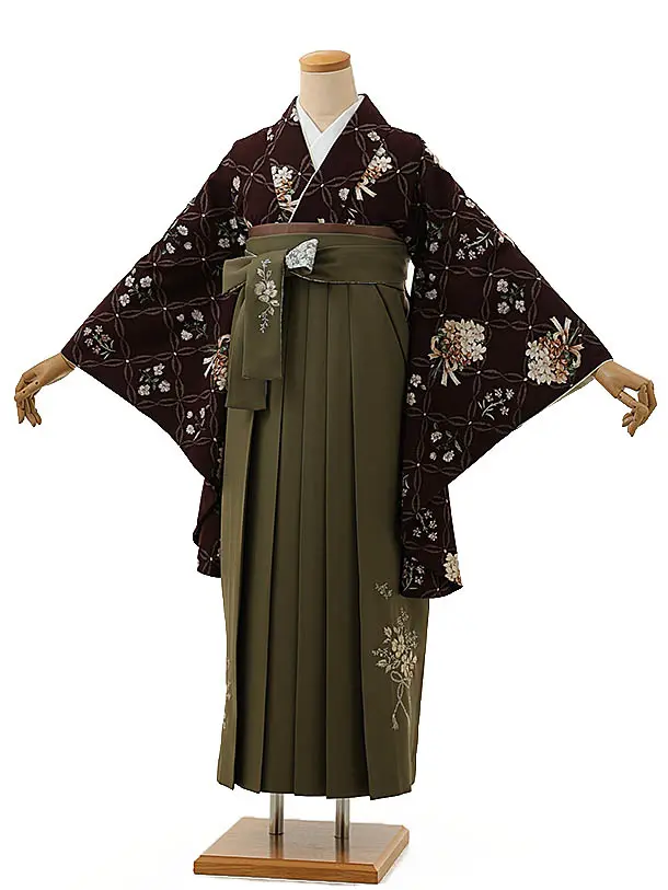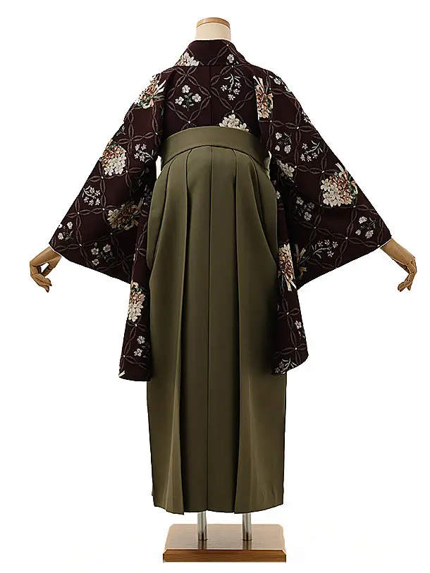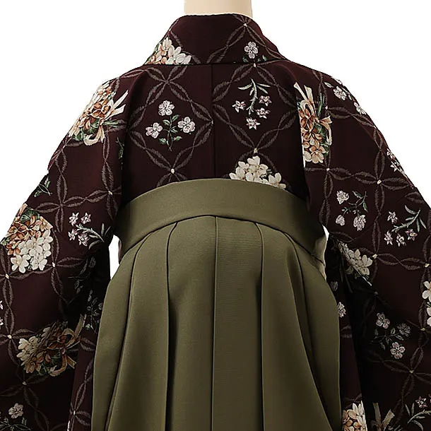 卒業式袴レンタル1230 Kamishibai すみれブーケブラウンxカーキ