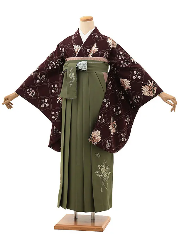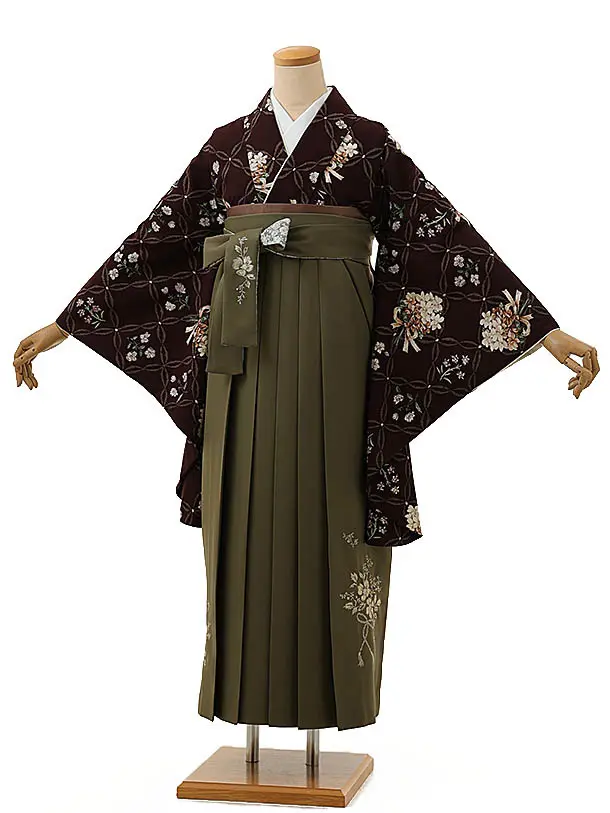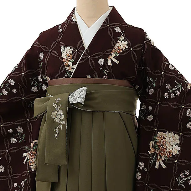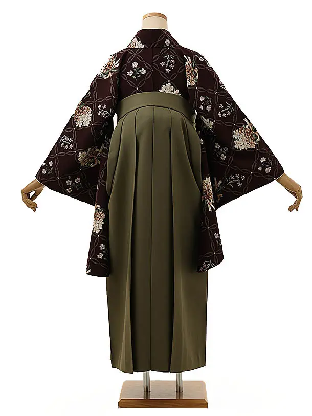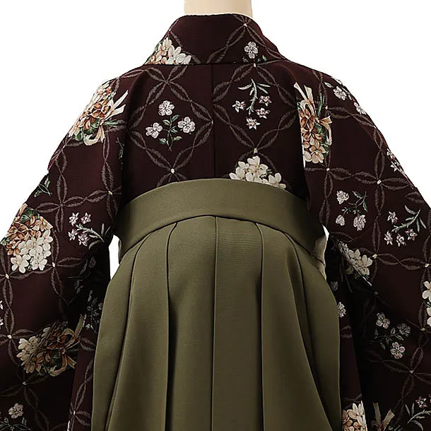 卒業式袴レンタル1231 Kamishibai すみれブーケブラウンxカーキ