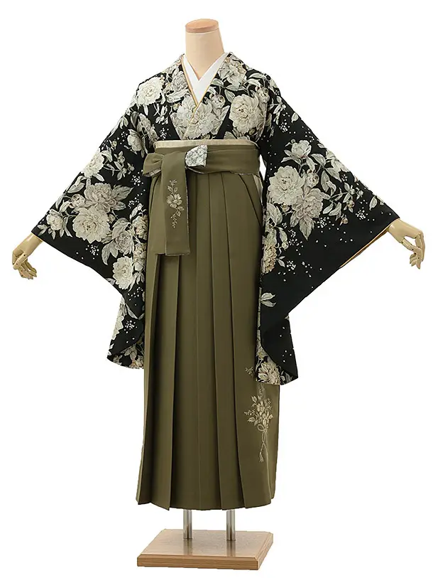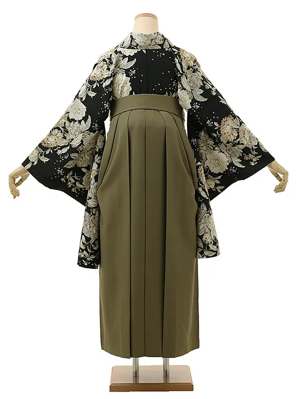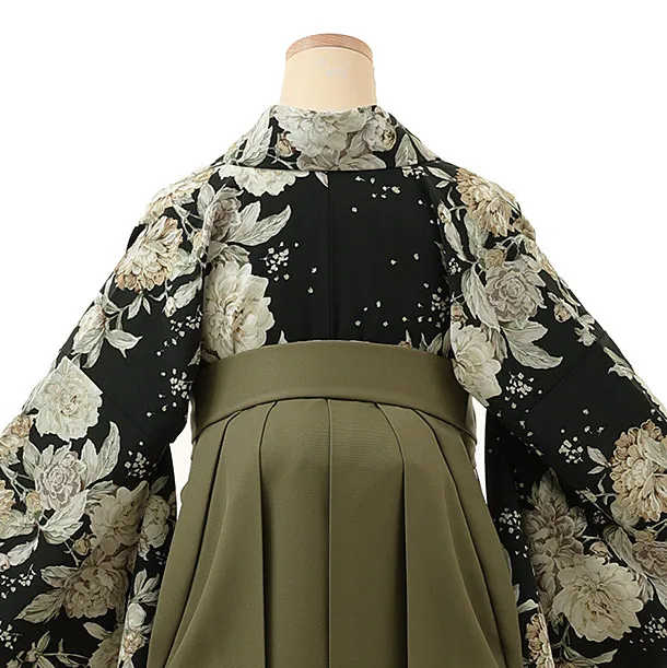 卒業式袴レンタル1233 Kamishibai ロココ花黒xカーキ