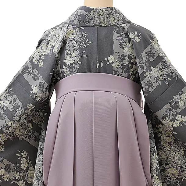 卒業式袴レンタル1236 Kamishibai ばらストライプグレーxラベンダー