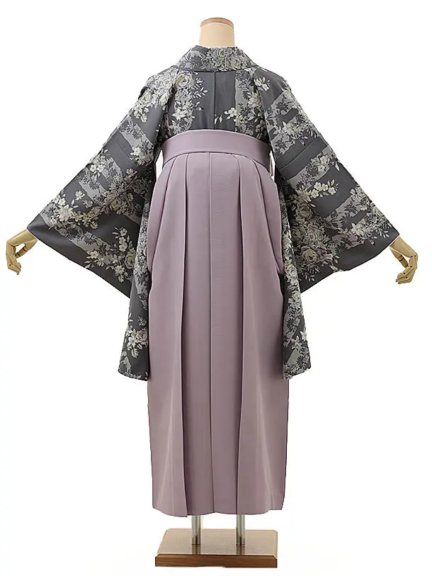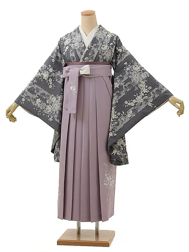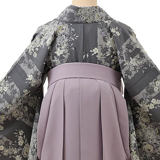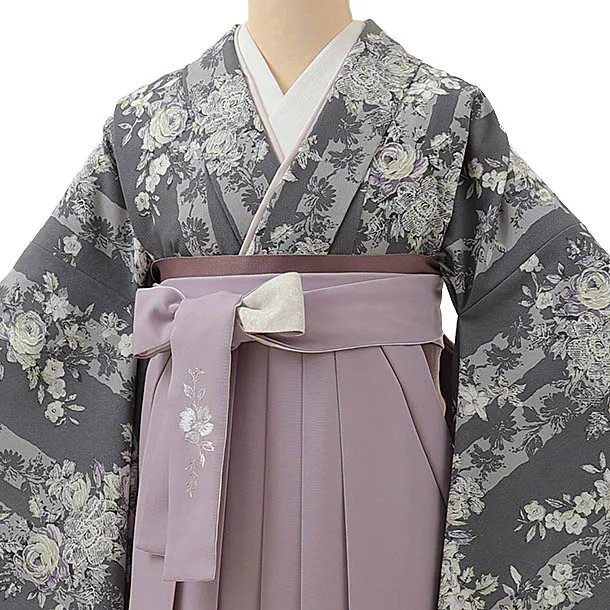 卒業式袴レンタル1237 Kamishibai ばらストライプグレーxラベンダー