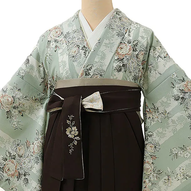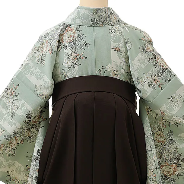 卒業式袴レンタル1240 Kamishibai ばらストライプミントxこげ茶