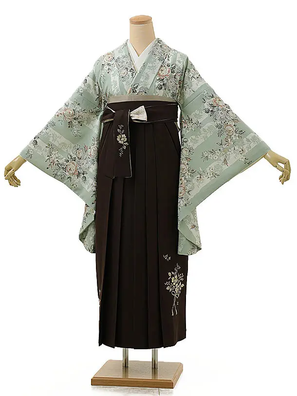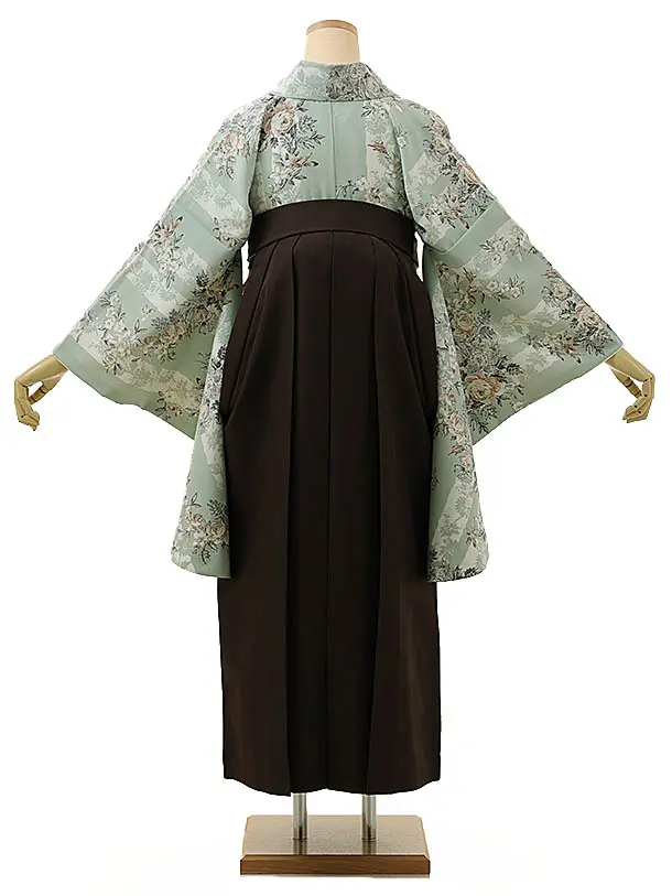 卒業式袴レンタル1241 Kamishibai ばらストライプミントxこげ茶