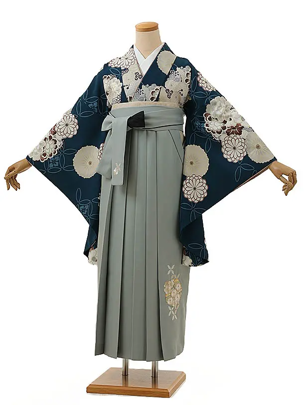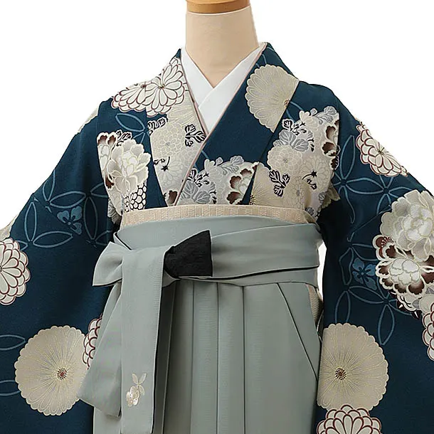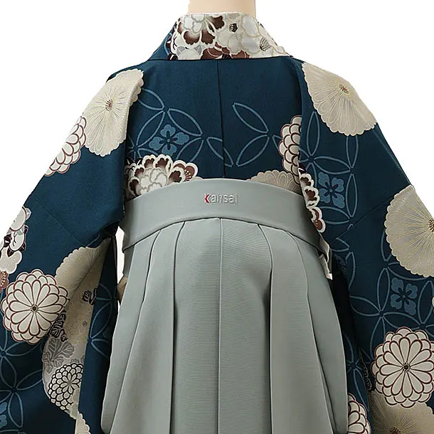 卒業式袴レンタル1250 Kansai 丸花に七宝青緑xグレー
