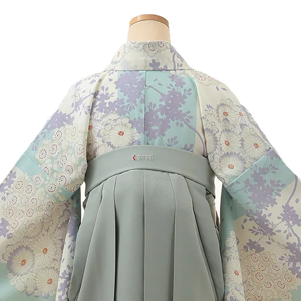 卒業式袴レンタル1254 Kansai 縞に梅菊白水色xグレー