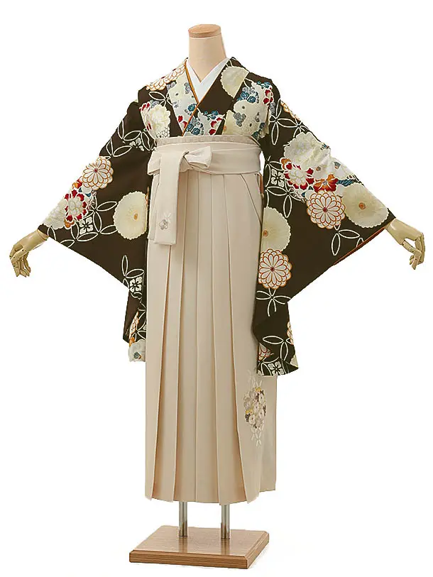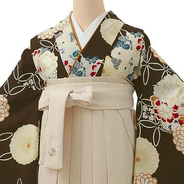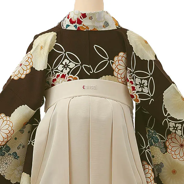 卒業式袴レンタル1256 Kansai 丸花に七宝こげ茶xアイボリー