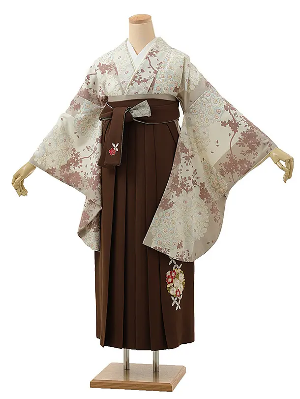 卒業式袴レンタル1260 Kansai 縞に梅菊クリームベージュx茶