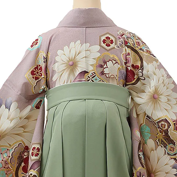 卒業式袴レンタル1270 パープルもみじ菊xペールグリーン