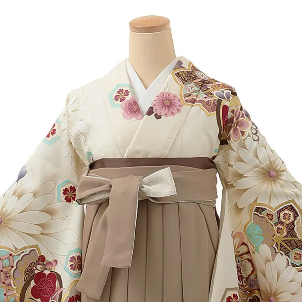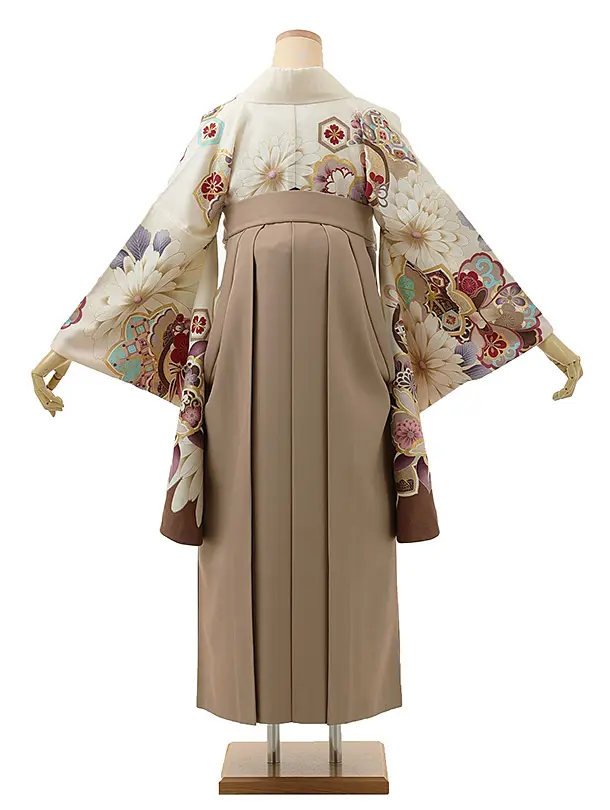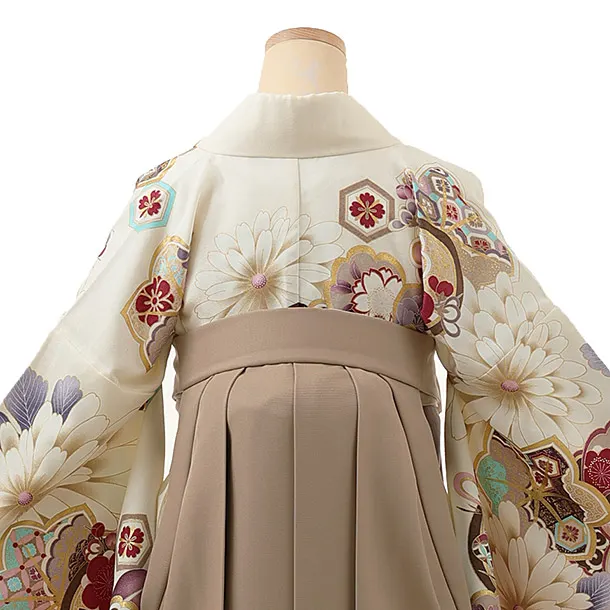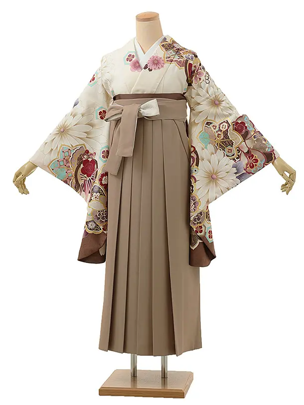 卒業式袴レンタル1276 オフホワイトもみじ菊xモカブラウン