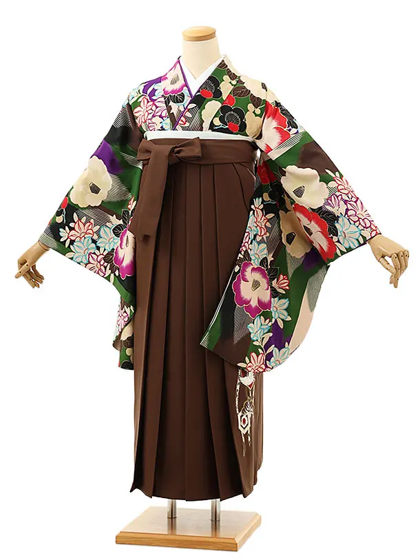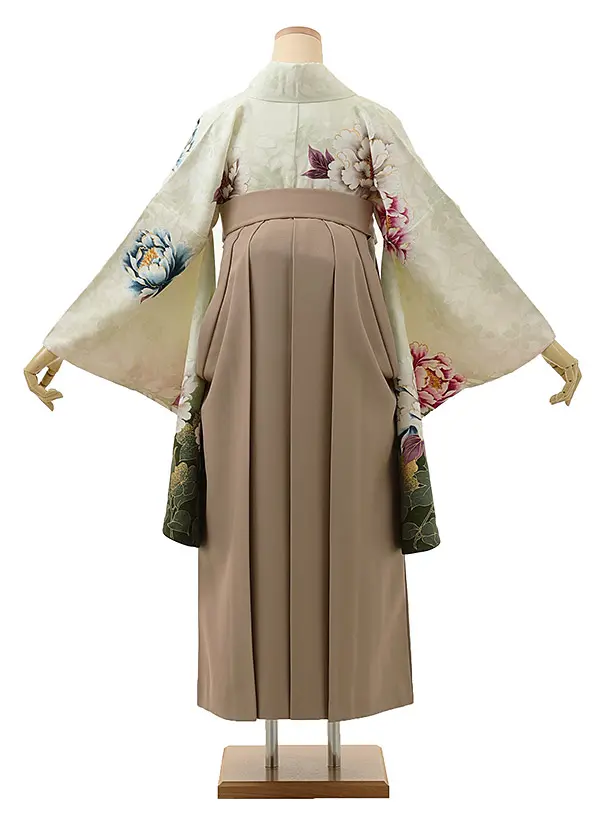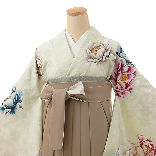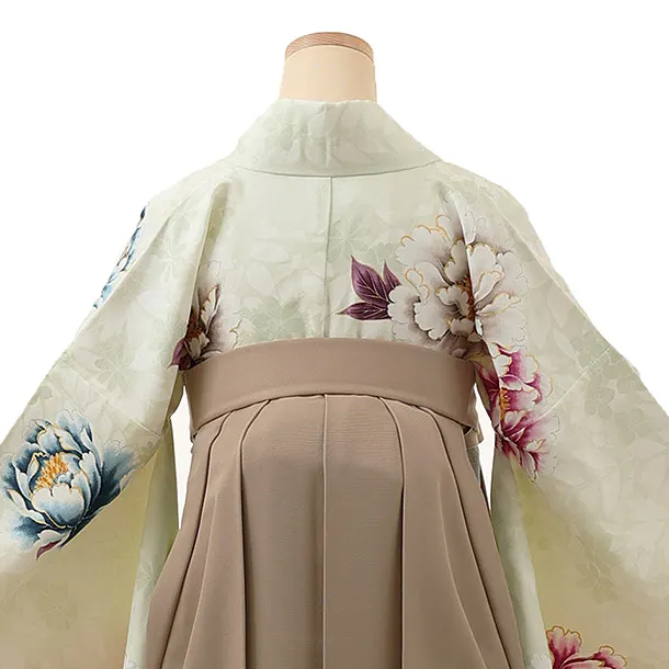 卒業式袴レンタル1280うすヒワ色牡丹xモカブラウン