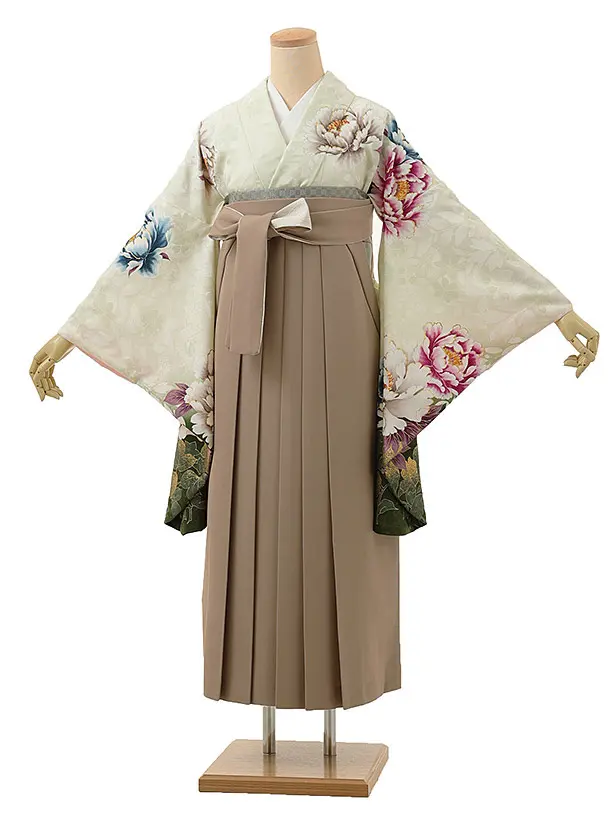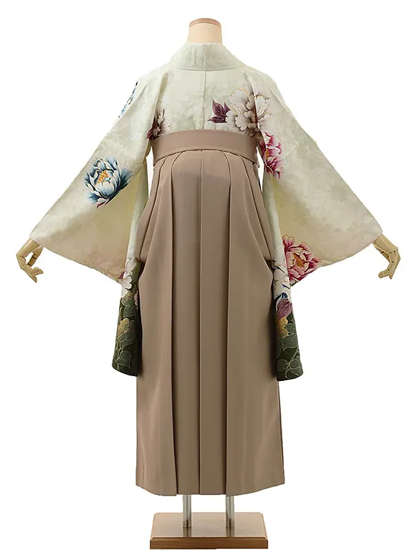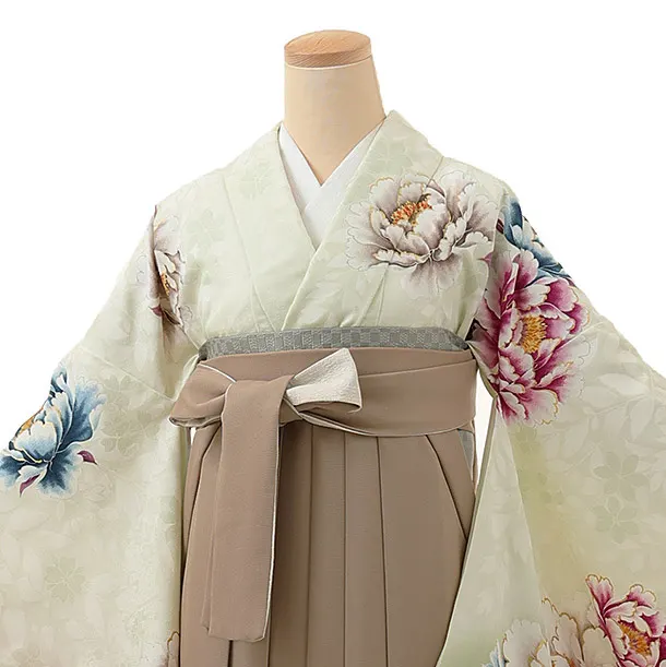 卒業式袴レンタル1281うすヒワ色牡丹xモカブラウン