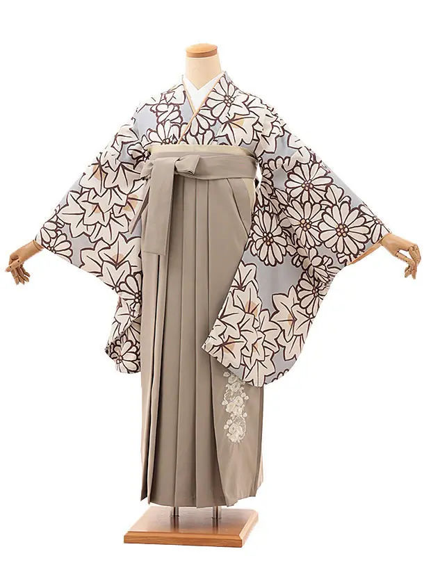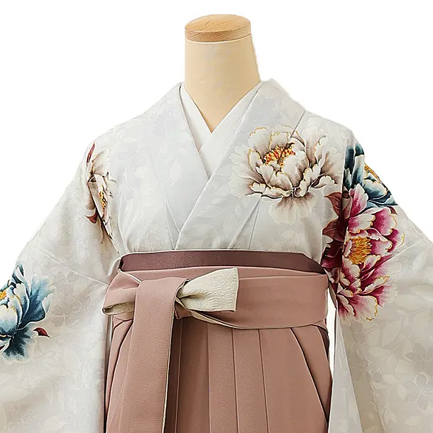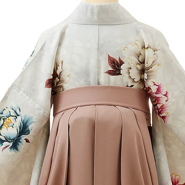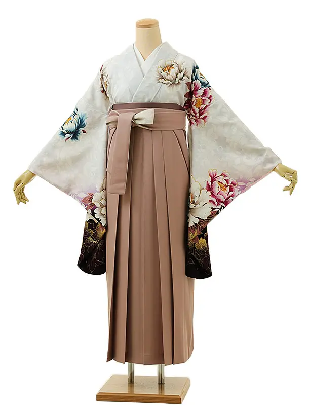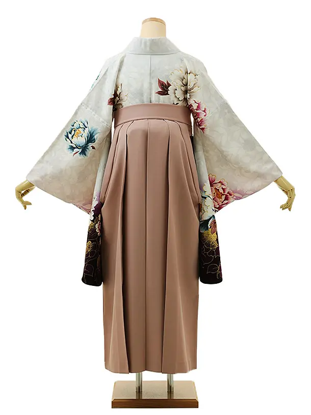 卒業式袴レンタル1285 うすグレー牡丹xピンクベージュ