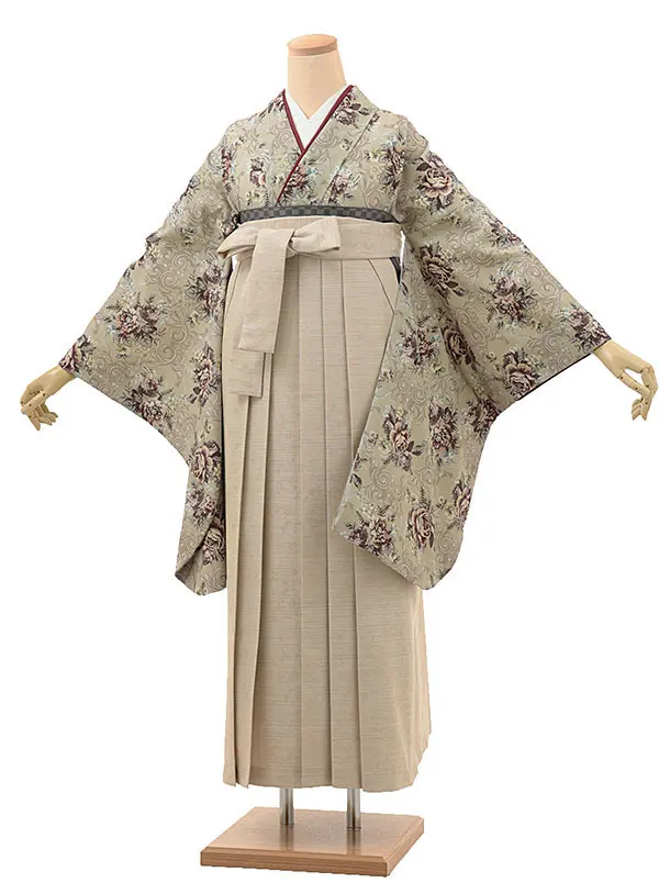 卒業式袴レンタル1286 ベージュボタニカルxベージュ