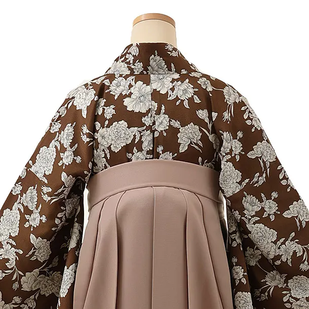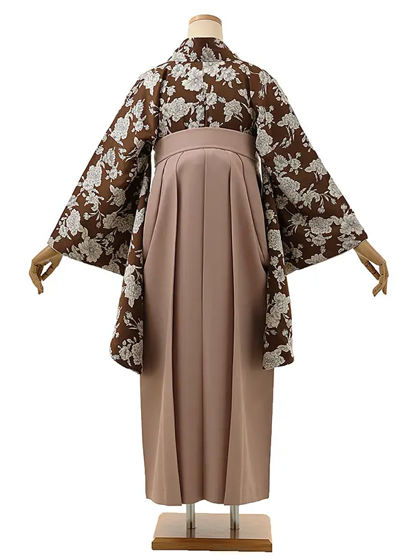 卒業式袴レンタル1290 ブラウン洋花xピンクベージュ