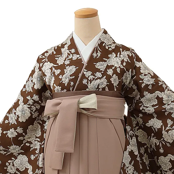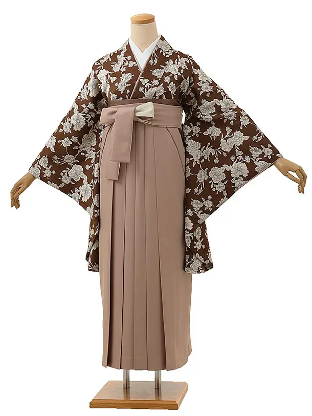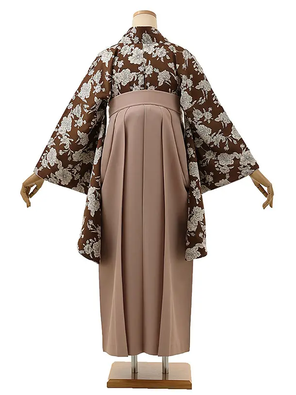 卒業式袴レンタル1291 ブラウン洋花xピンクベージュ