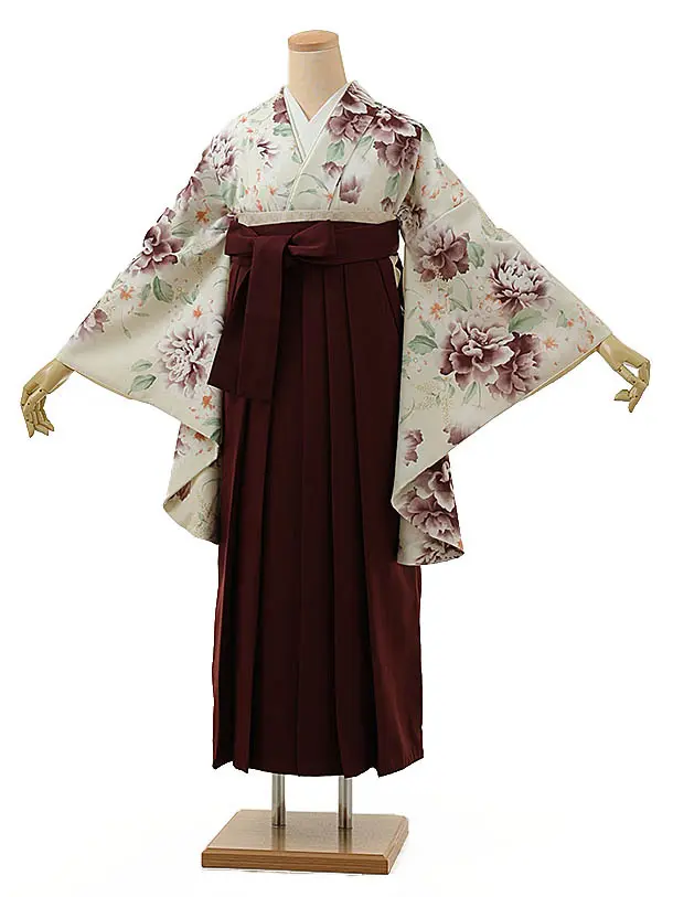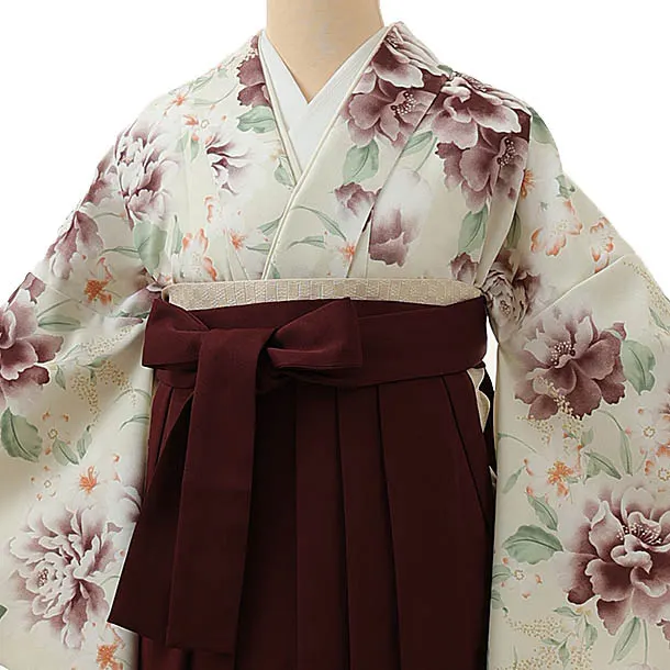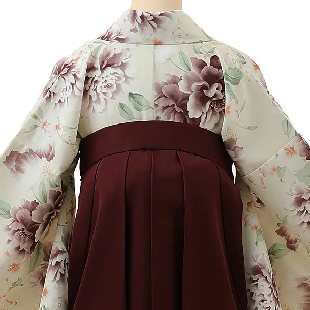卒業式袴レンタル1293 クリーム洋花xエンジ