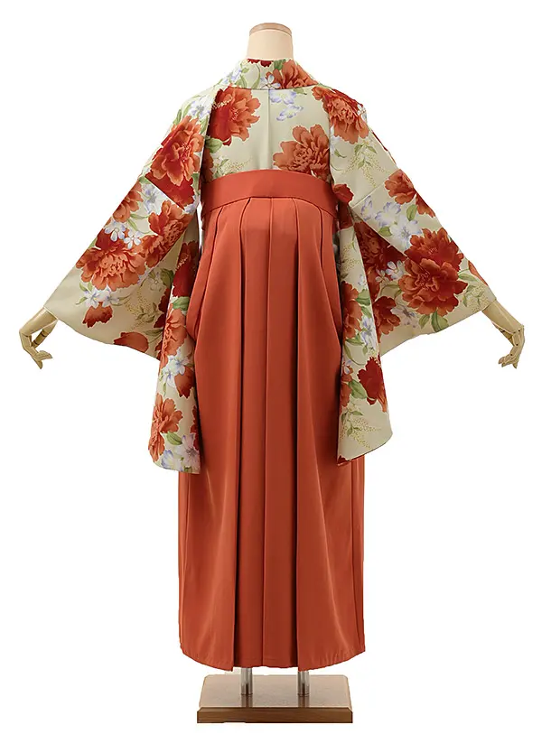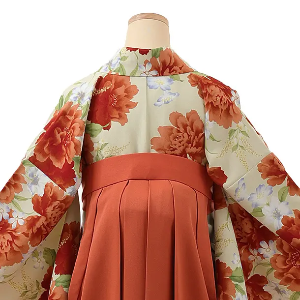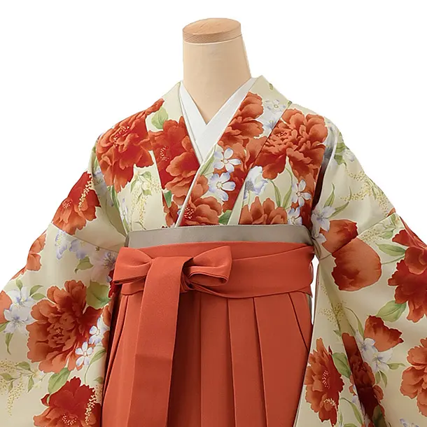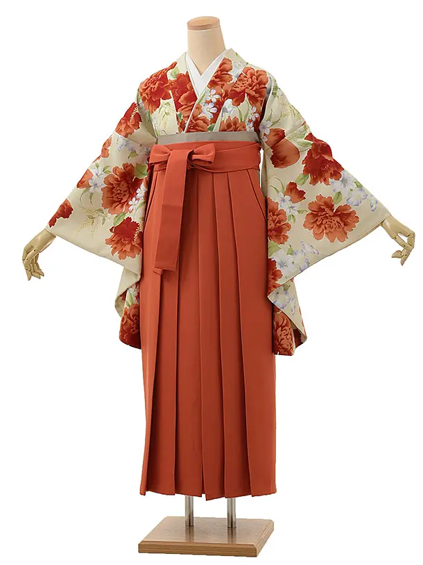 卒業式袴レンタル1296 クリーム洋花xオレンジ