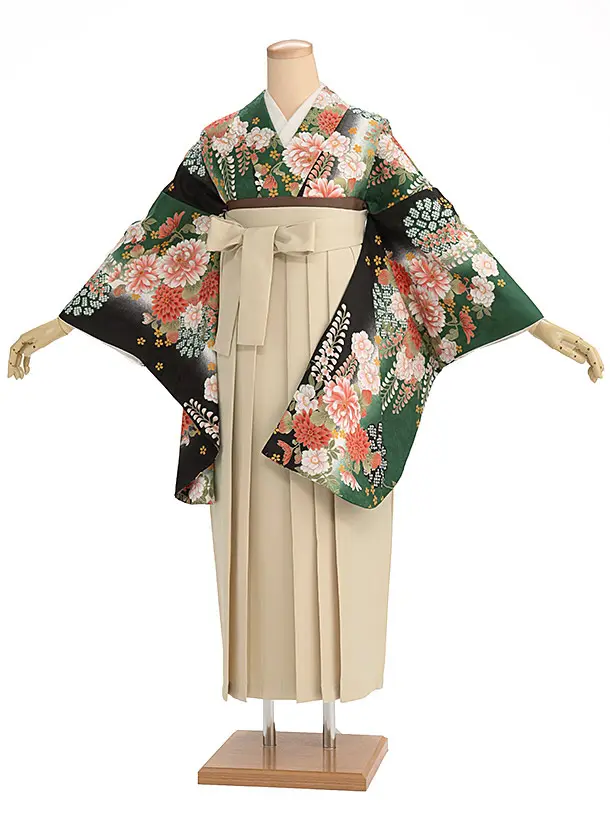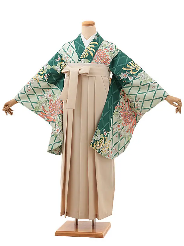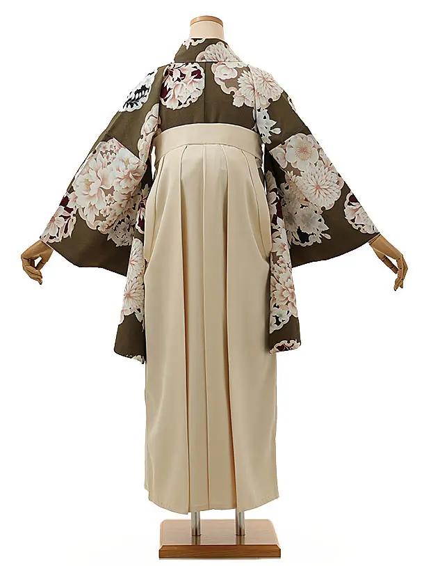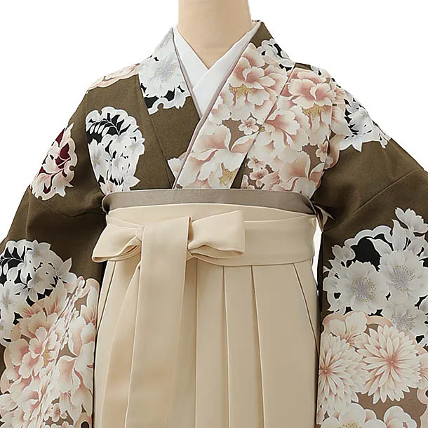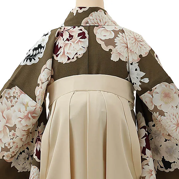 卒業式袴レンタル1298 カーキブラウン雪輪花xアイボリー