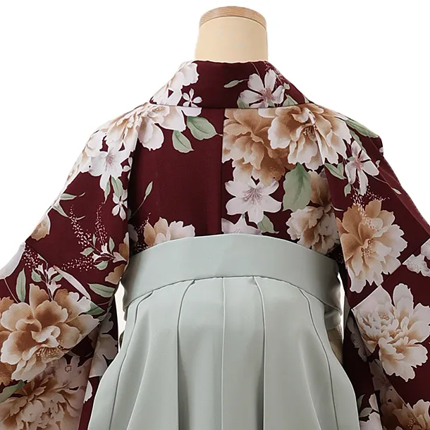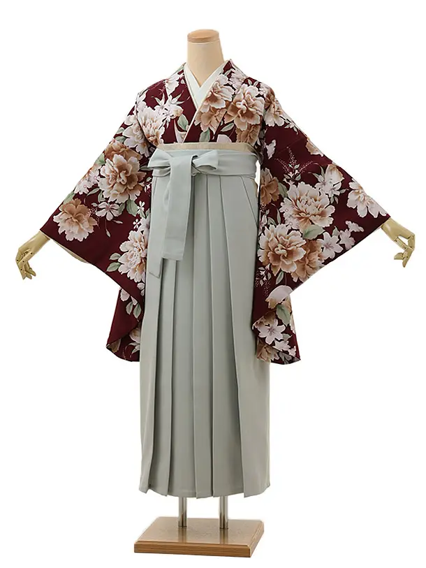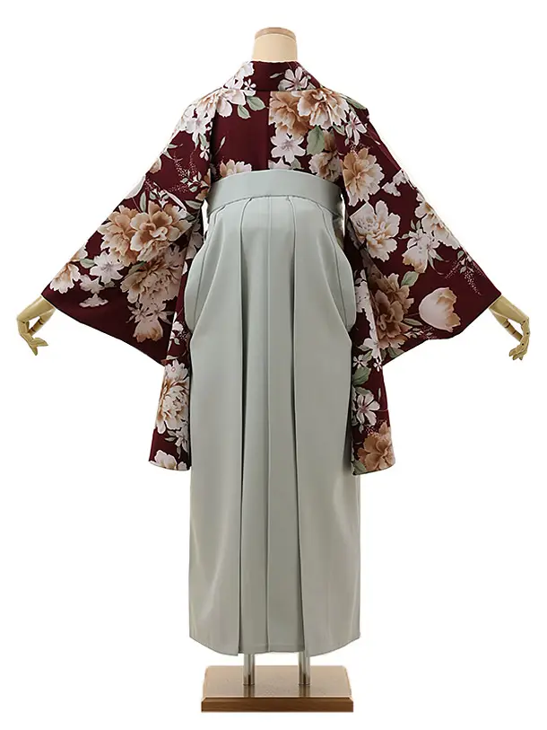 卒業式袴レンタル1300 バーガンディ洋花xグレー