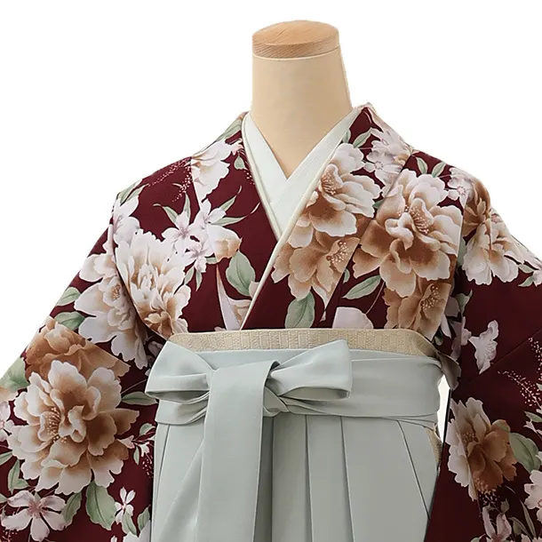 卒業式袴レンタル1301 バーガンディ洋花xグレー