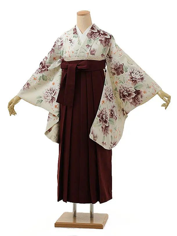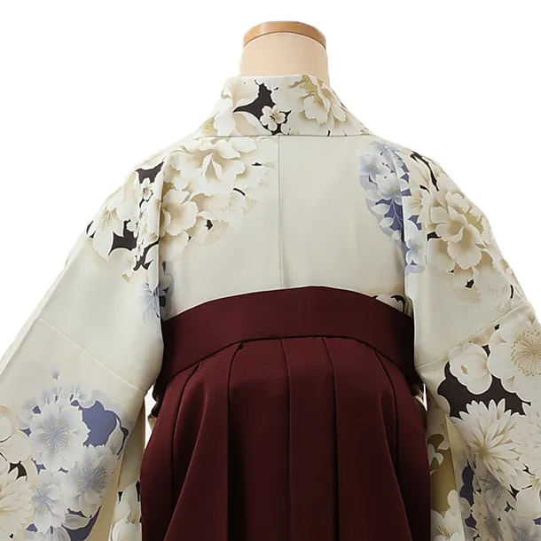卒業式袴レンタル1303 クリーム雪輪花xバーガンディ