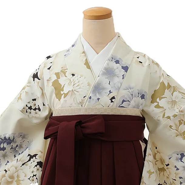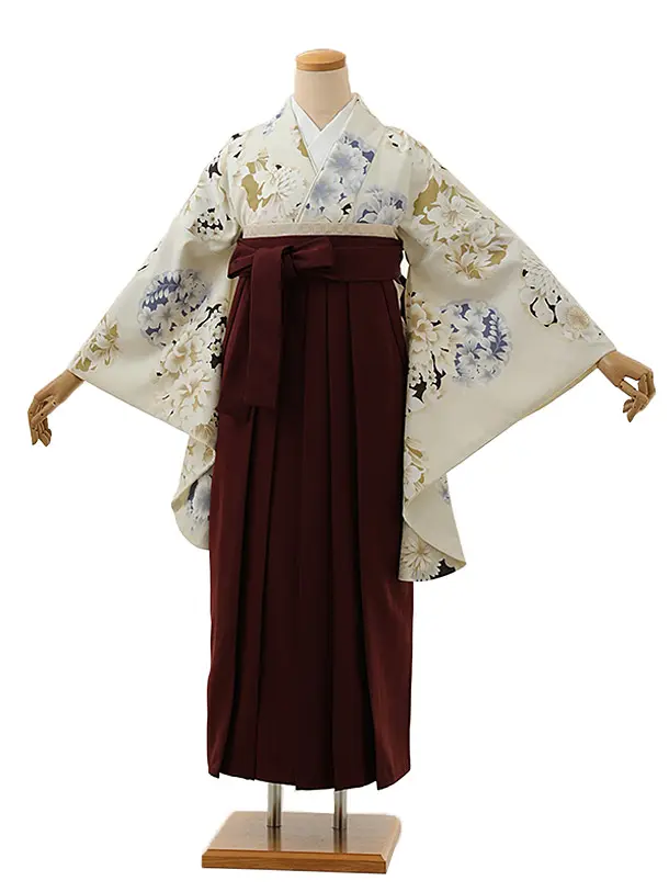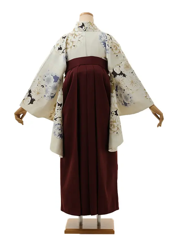 卒業式袴レンタル1304 クリーム雪輪花xバーガンディ