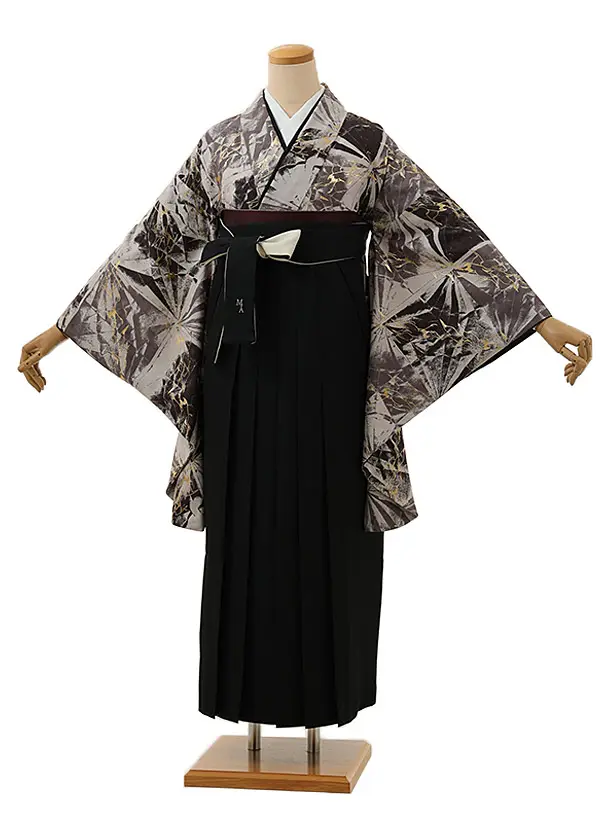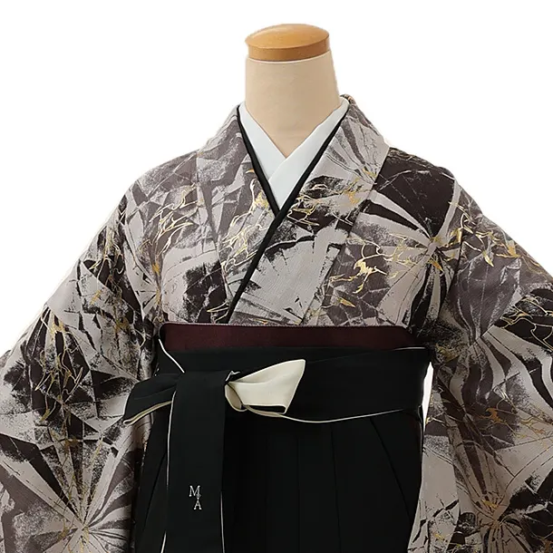 卒業式袴レンタル1307 モダンアンテナ ブラウンパープルフラッシュx黒