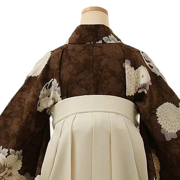 卒業式袴レンタル1312 九重 ブラウン牡丹菊xアイボリー