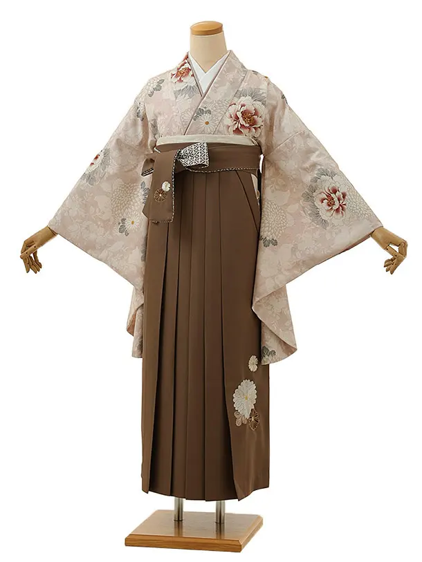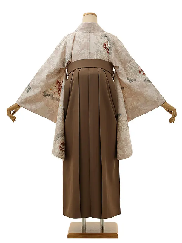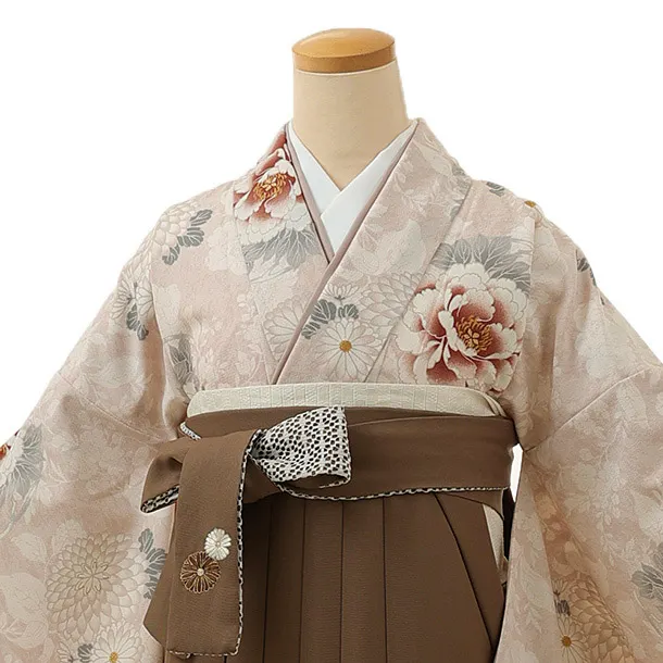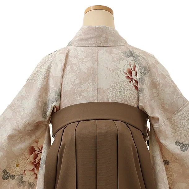 卒業式袴レンタル1314 九重 ピンクベージュ牡丹菊xモカブラウン