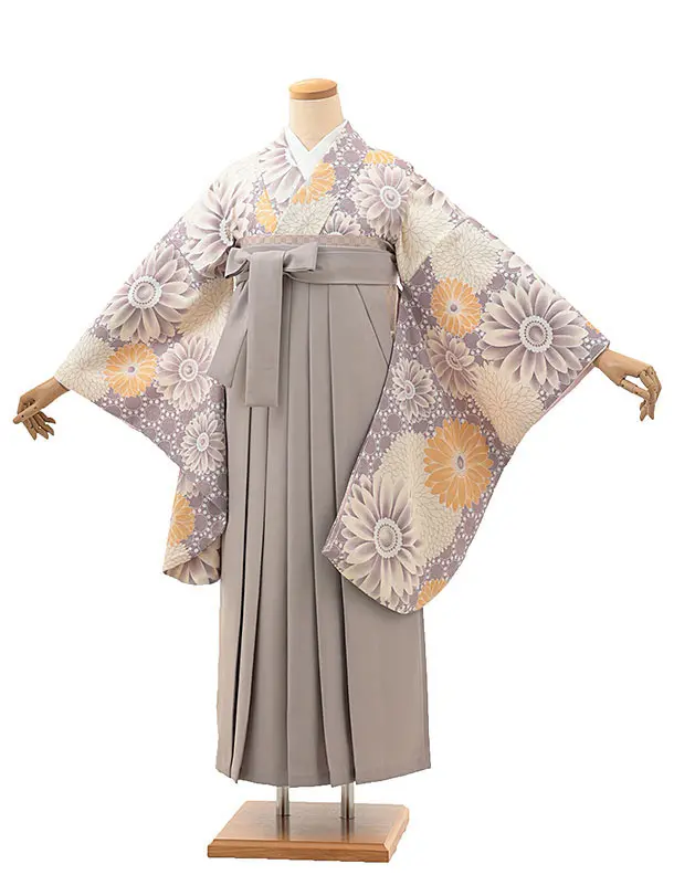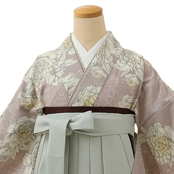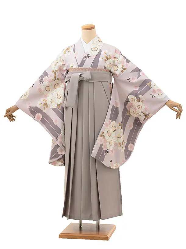 卒業式袴レンタル1330 ピンクパープル芍薬xグレー