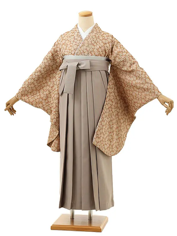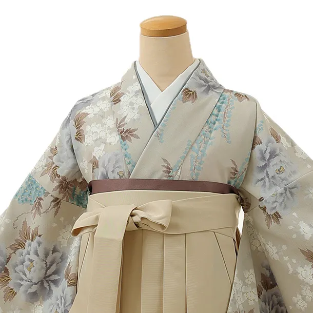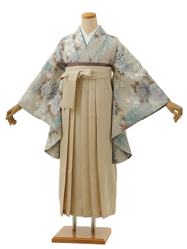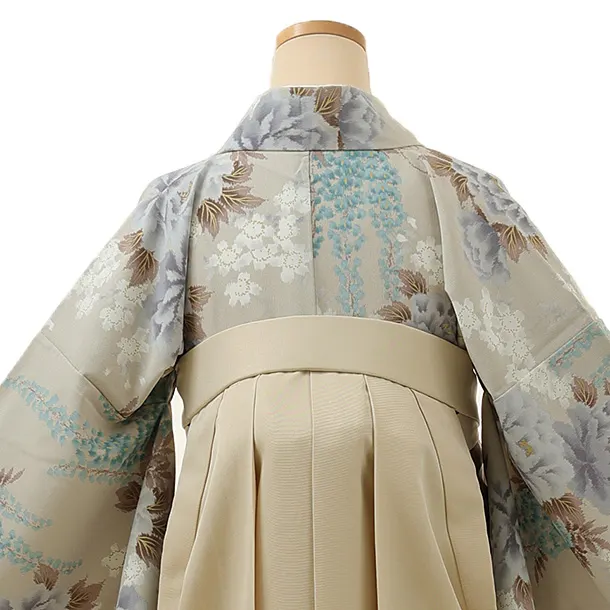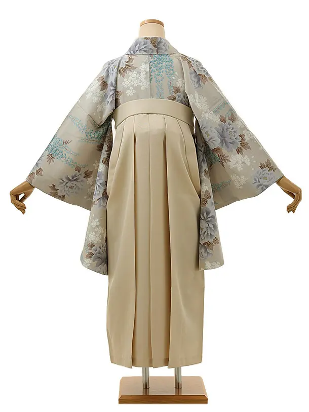 卒業式袴レンタル1333 グレージュ牡丹藤xアイボリー
