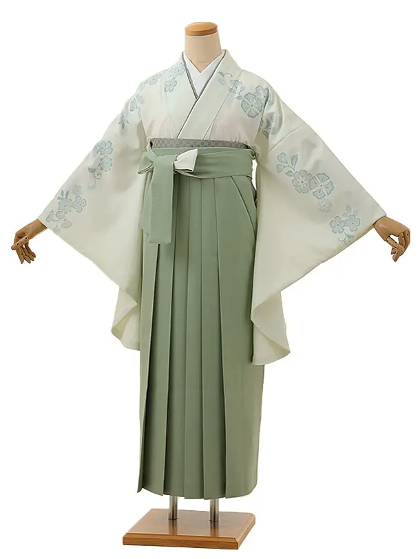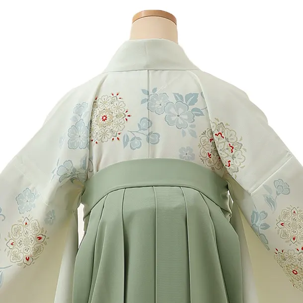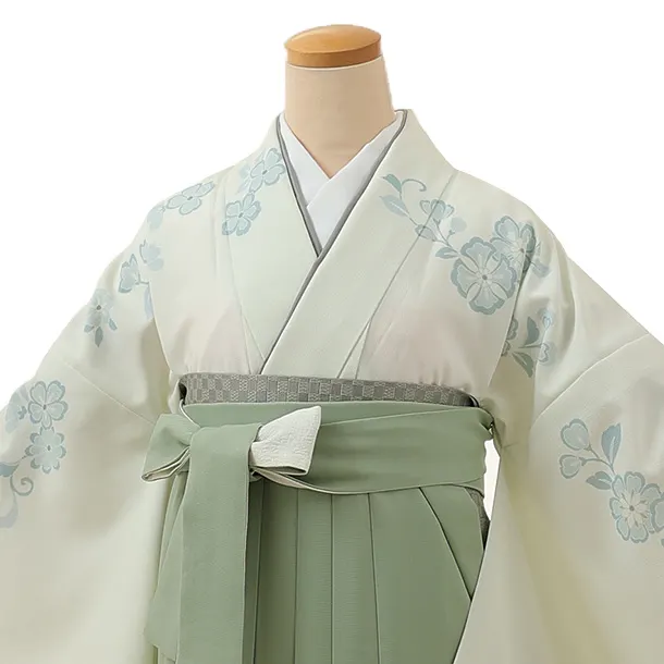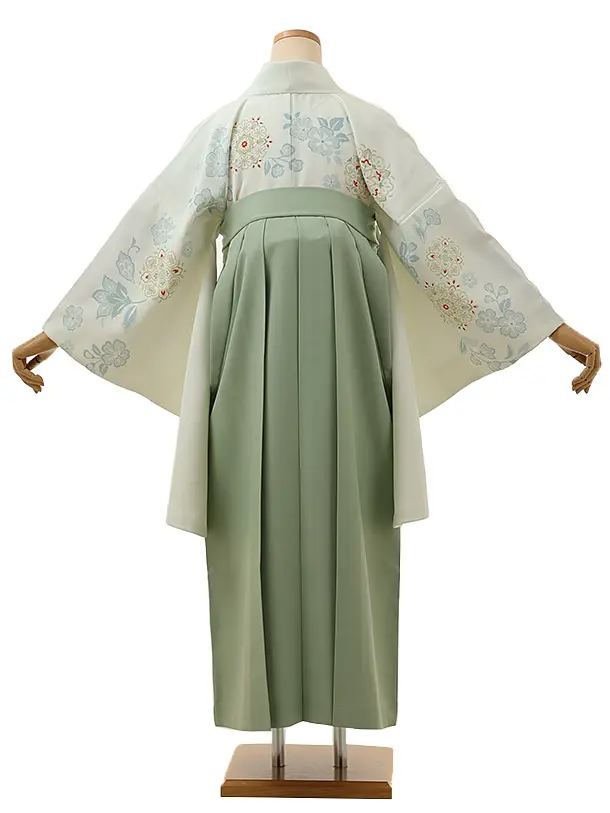 卒業式袴レンタル1338 クリーム更紗xグリーン