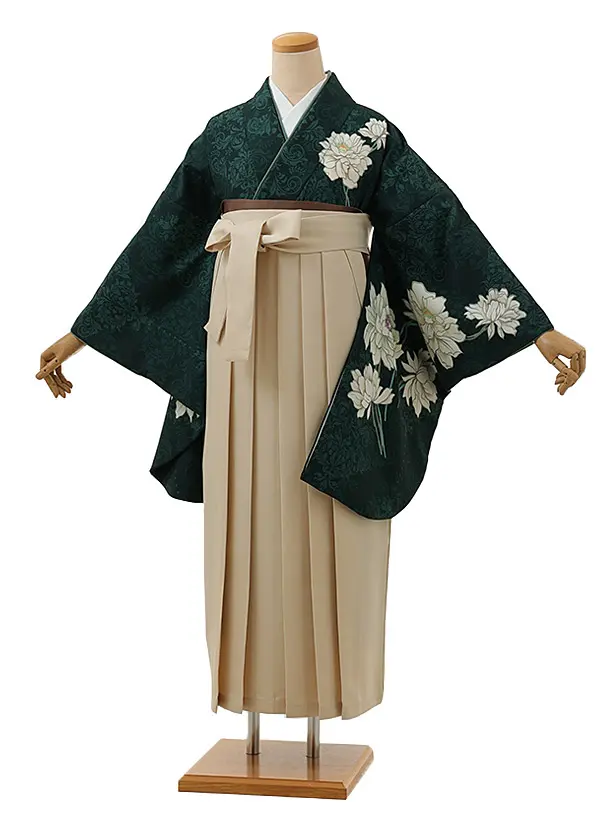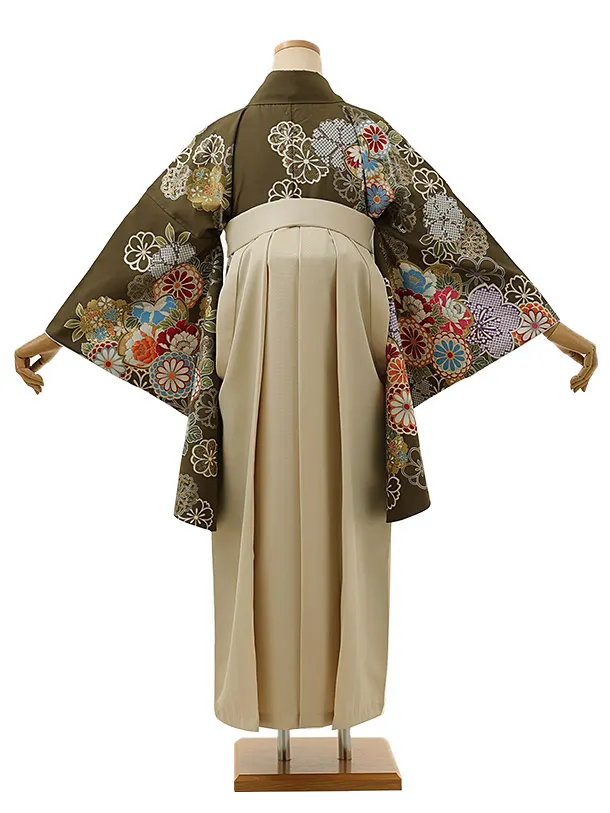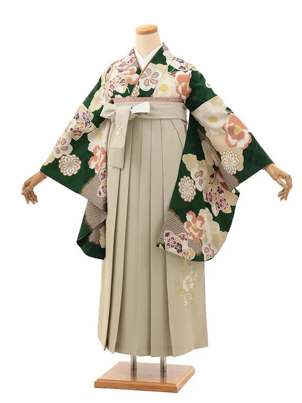 卒業式袴レンタル1339 抹茶グリーン花づくしxアイボリー