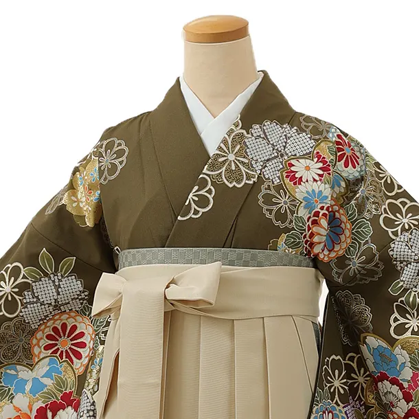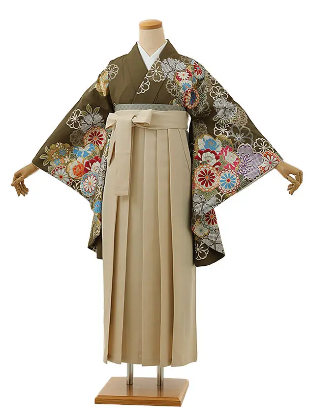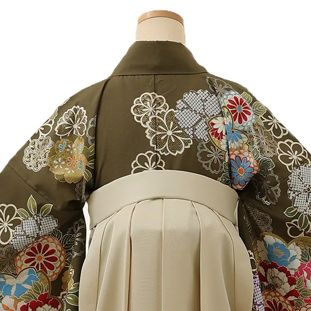 卒業式袴レンタル1340 抹茶グリーン花づくしxアイボリー
