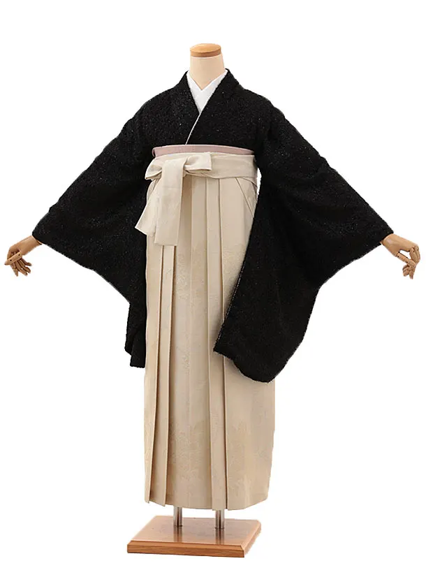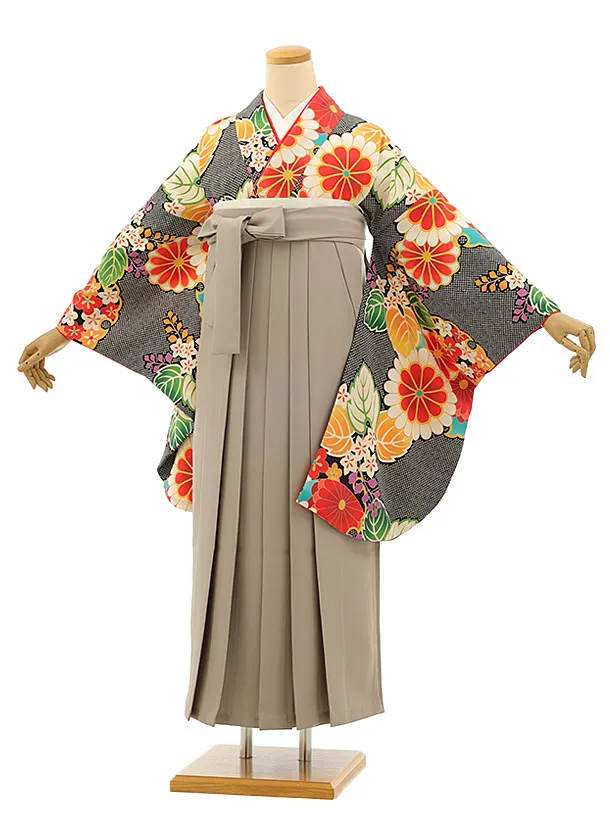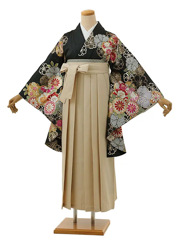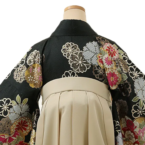卒業式袴レンタル1341 黒花づくしxアイボリー