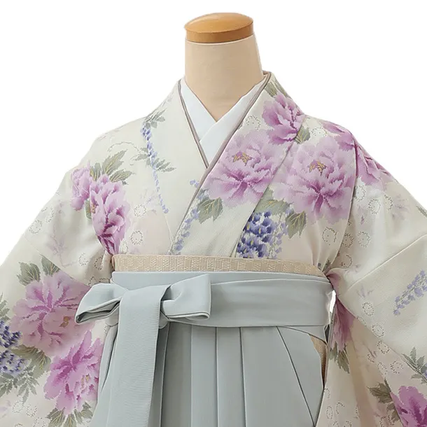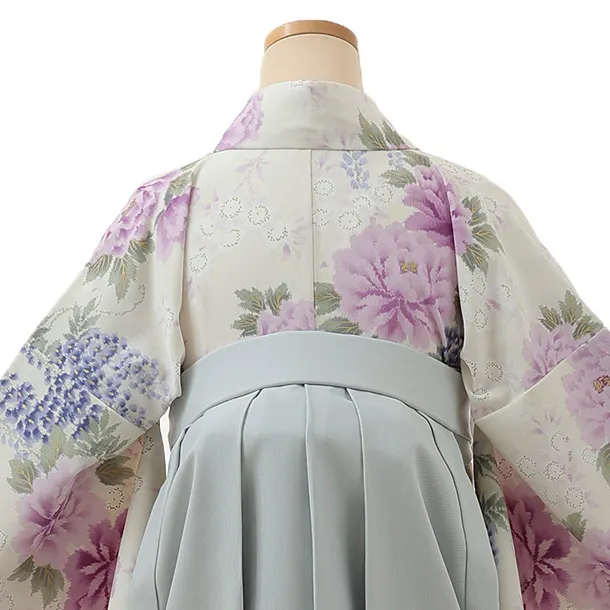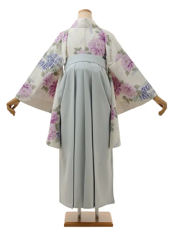 卒業式袴レンタル1344 オフホワイト牡丹藤xグレー