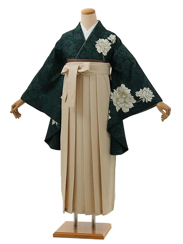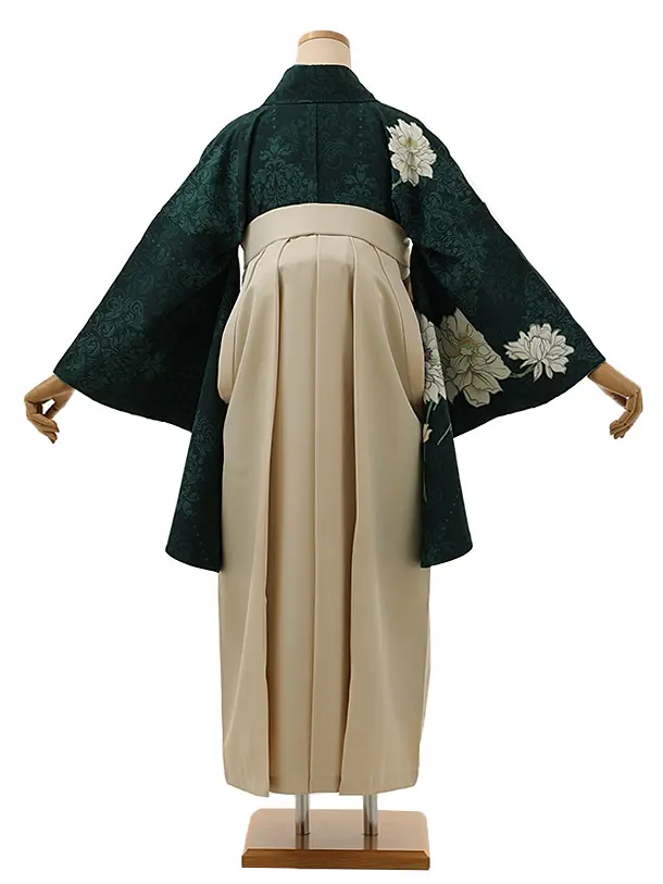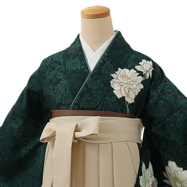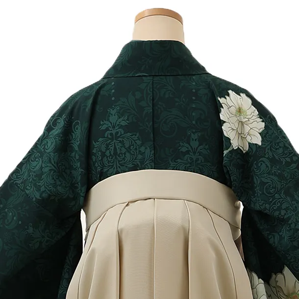卒業式袴レンタル1345 芙蓉に更紗小紋グリーンxアイボリー