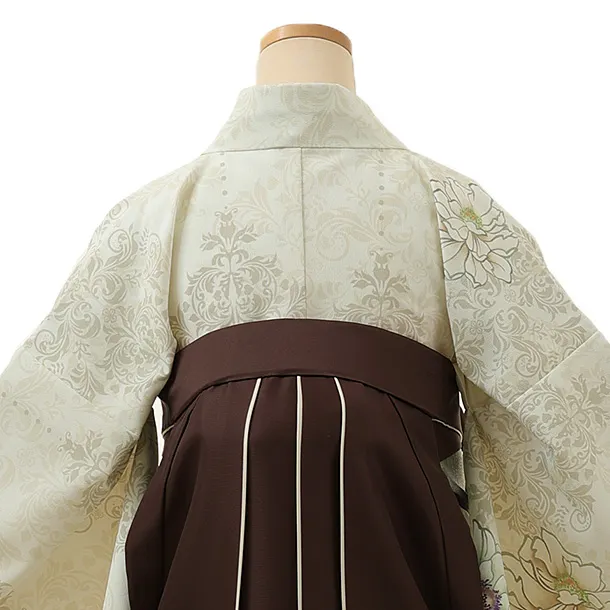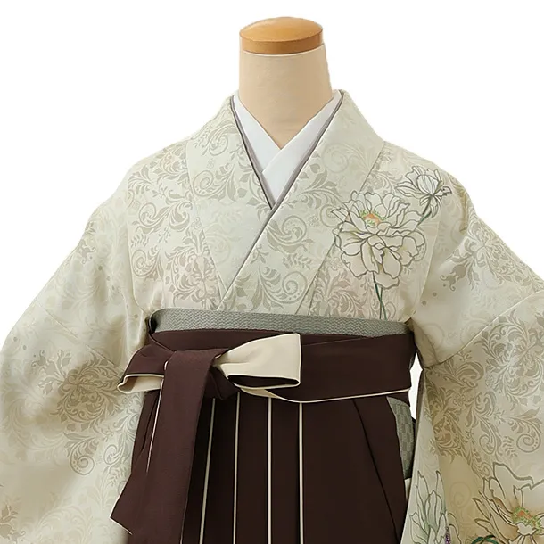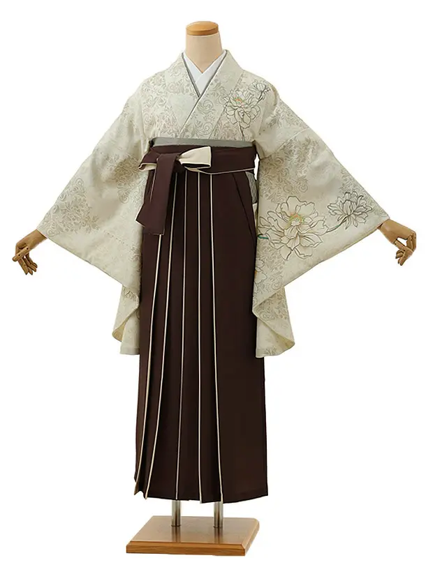 卒業式袴レンタル1346 芙蓉に更紗小紋ベージュxブラウン