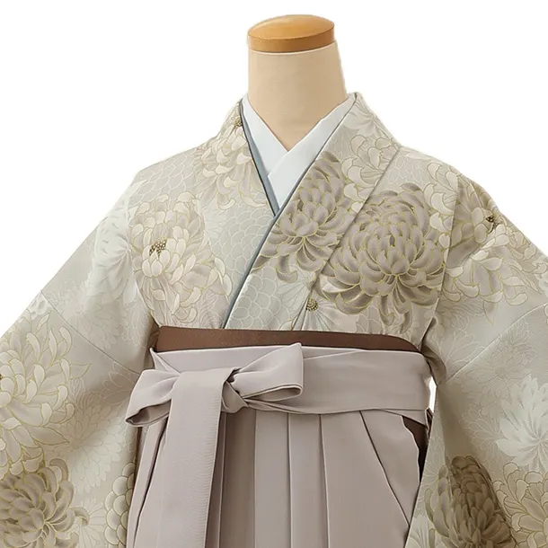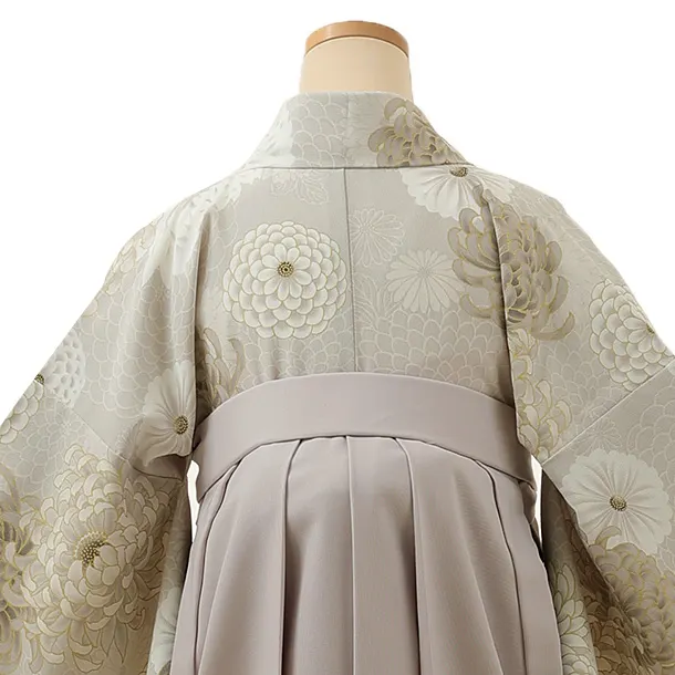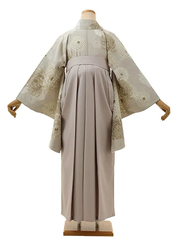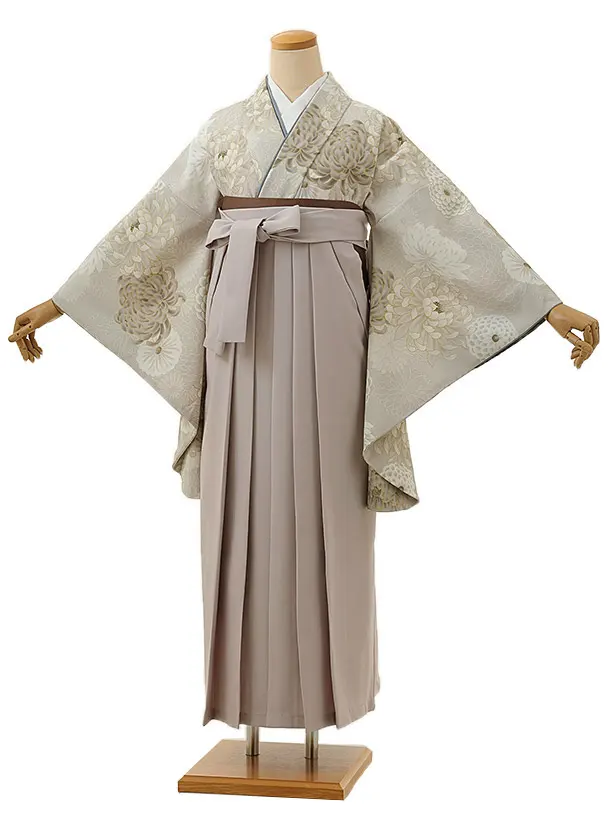 卒業式袴レンタル1348 グレージュ菊x藤色