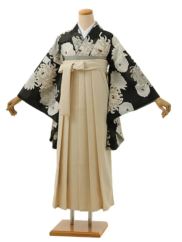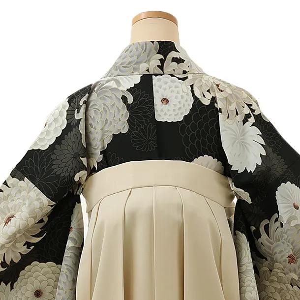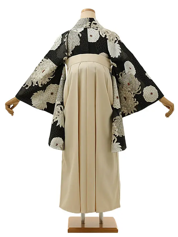 卒業式袴レンタル1349 黒地菊xアイボリー
