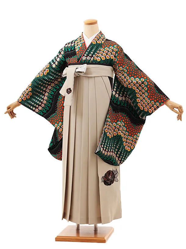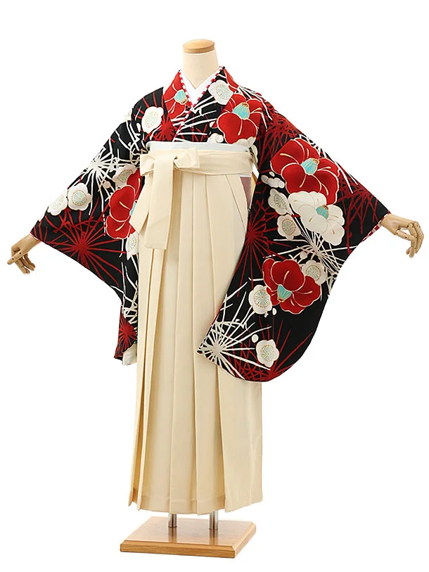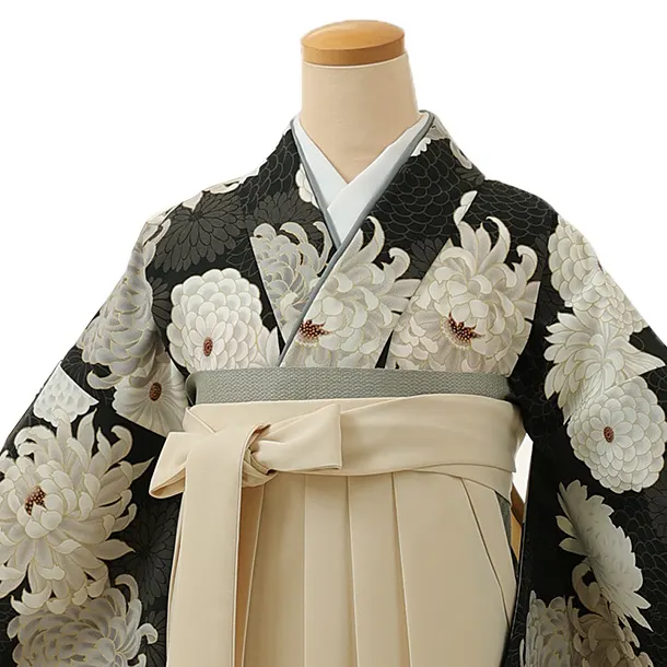 卒業式袴レンタル1350 黒地菊xアイボリー
