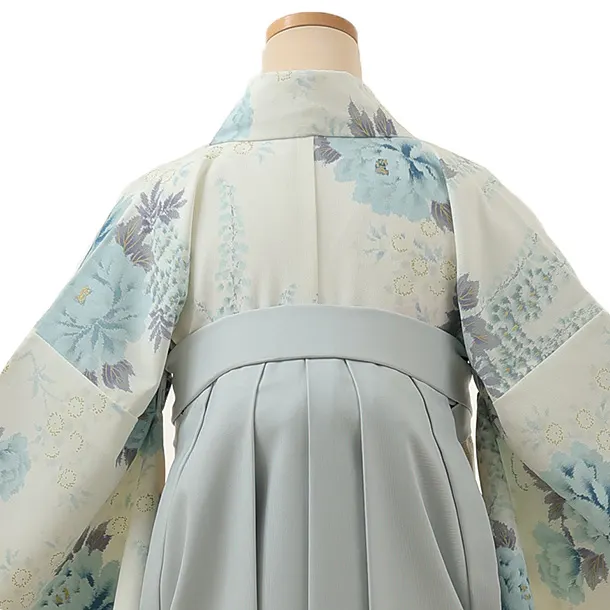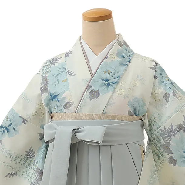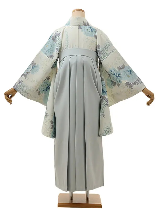 卒業式袴レンタル1351 クリーム牡丹藤xグレー
