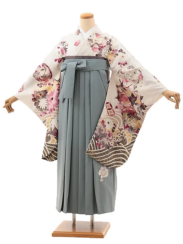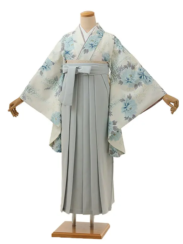卒業式袴レンタル1352 クリーム牡丹藤xグレー