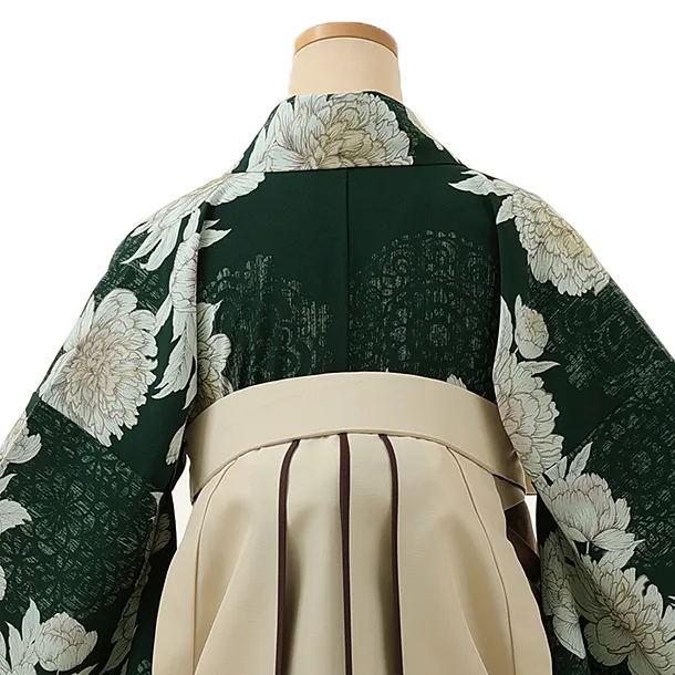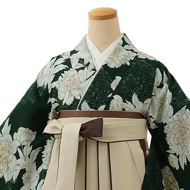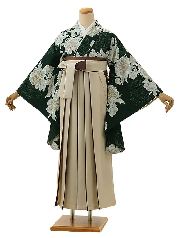 卒業式袴レンタル1353 グリーン芍薬xアイボリー茶