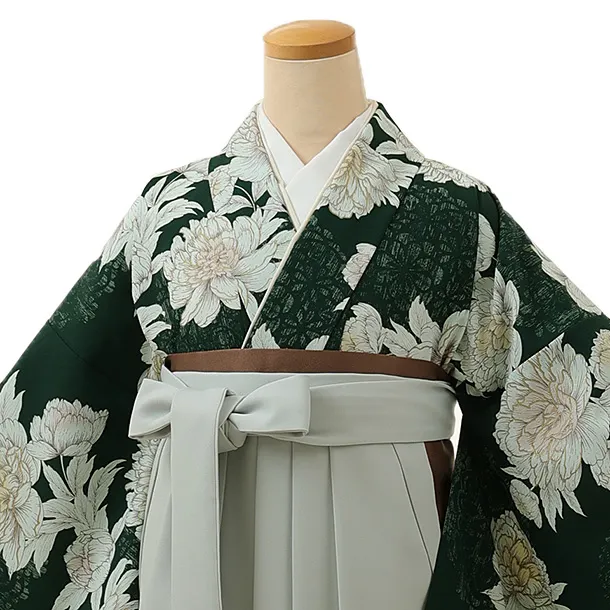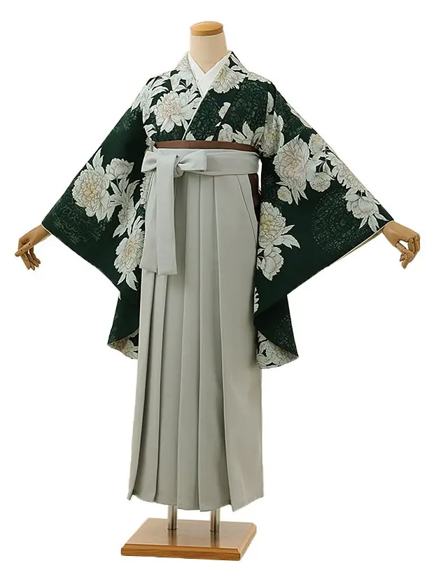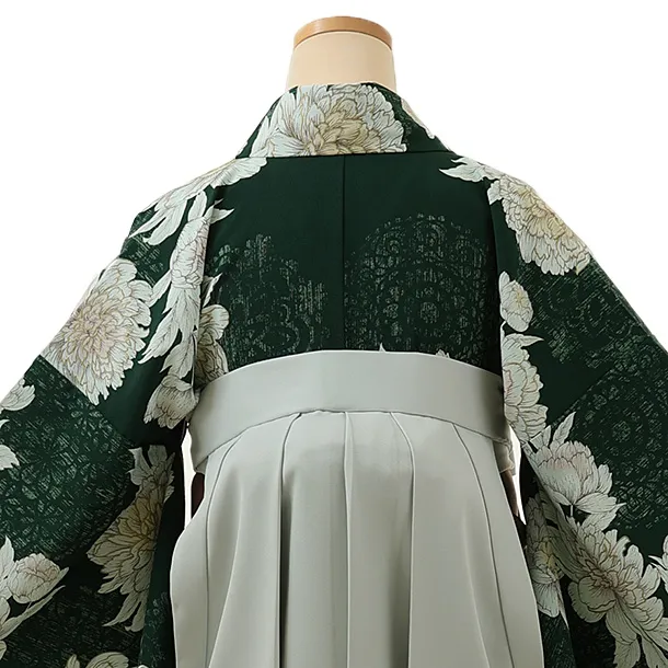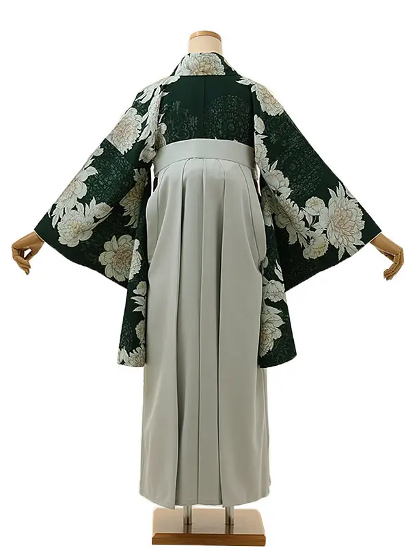 卒業式袴レンタル1355 グリーン芍薬xグレー