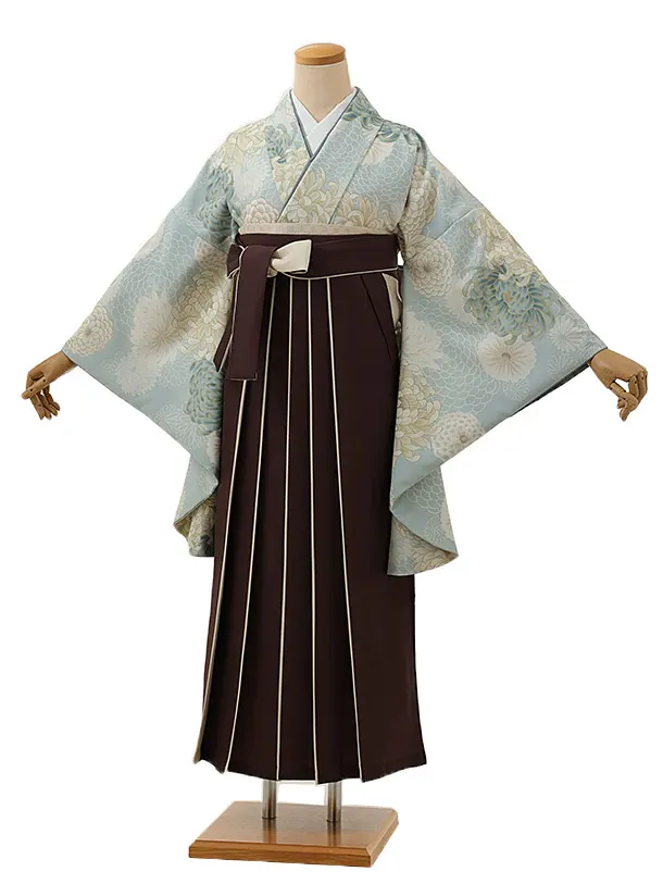 卒業式袴レンタル1357 ブルーグレー菊xブラウン