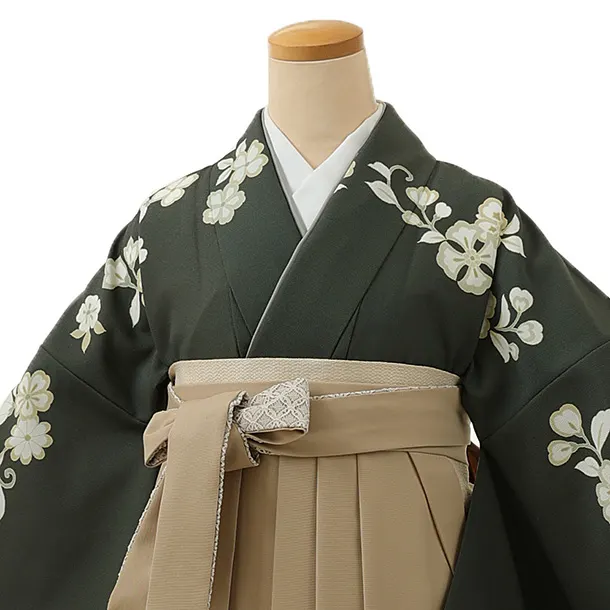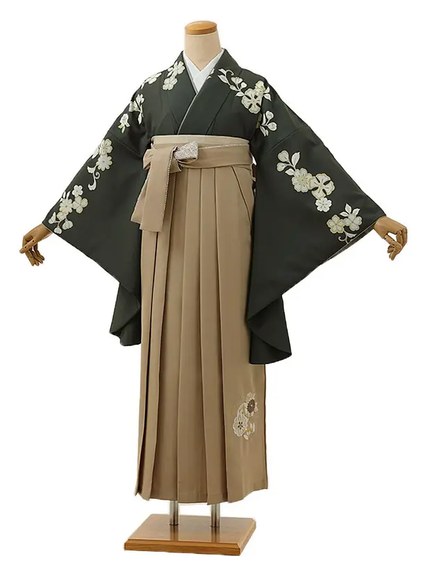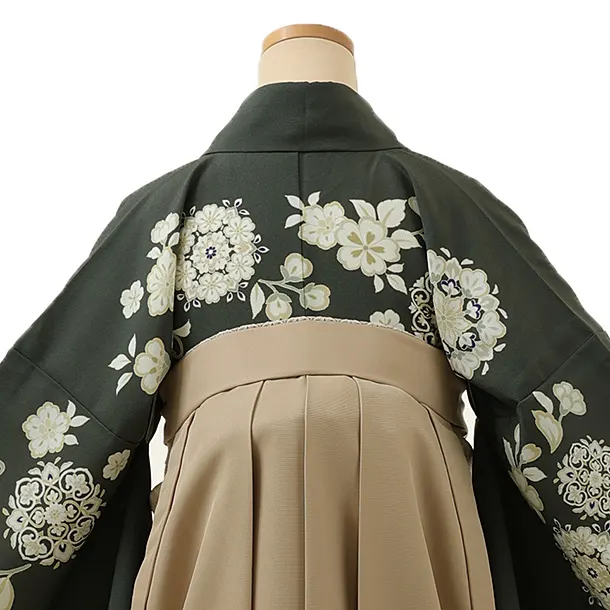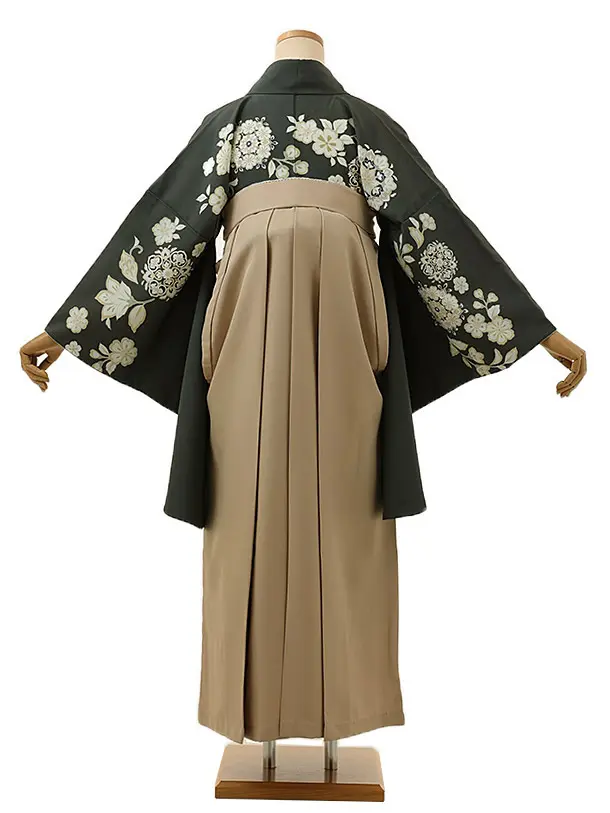 卒業式袴レンタル1358 グレー更紗xモカベージュ