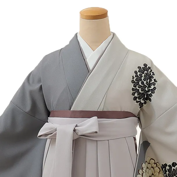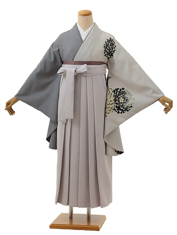 卒業式袴レンタル1359 グレー菊染め分けx薄パープル