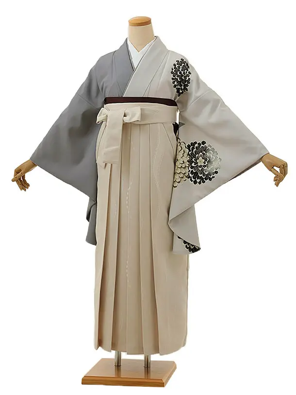 卒業式袴レンタル1360 グレー菊染め分けxアイボリー